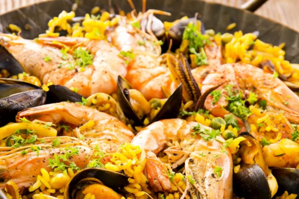 Il piatto a base di riso, zafferano, carne, pesce e mix di verdure,viene preparato nella tipica padella da cui prende il nome la paella